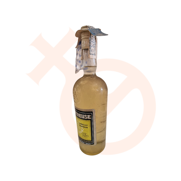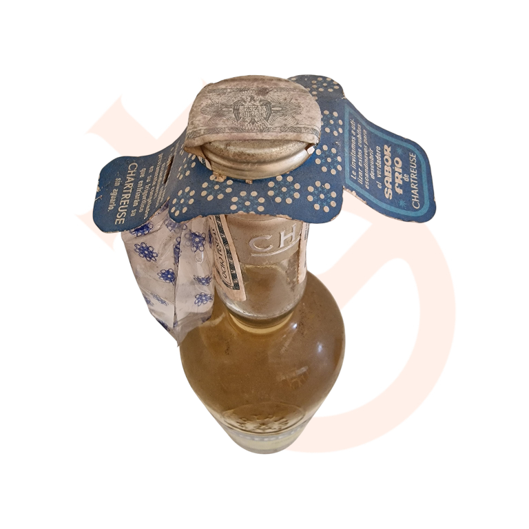 Excepcional botella de Chartreuse «la Fabiola» amarilla fabricada en Tarragona. Periodo de producción entre los años 1968-1973. Con capacidad de 75cl, con una graduación de 43⁰. Precinto fiscal de 8 pesetas. Excepcional nivel de llenado, preservando los hielos escandinavos originales de la época. Ideal para colección o degustación.